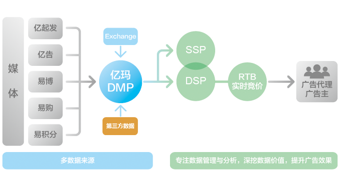 億瑪DMP面向廣告交易中的各方,以技術驅動和數據算法為核心,專注于數據倉儲和挖掘、管理和分析,運用RTB技術和大數據精準算法使得廣告投放受眾更精準,效果更優。